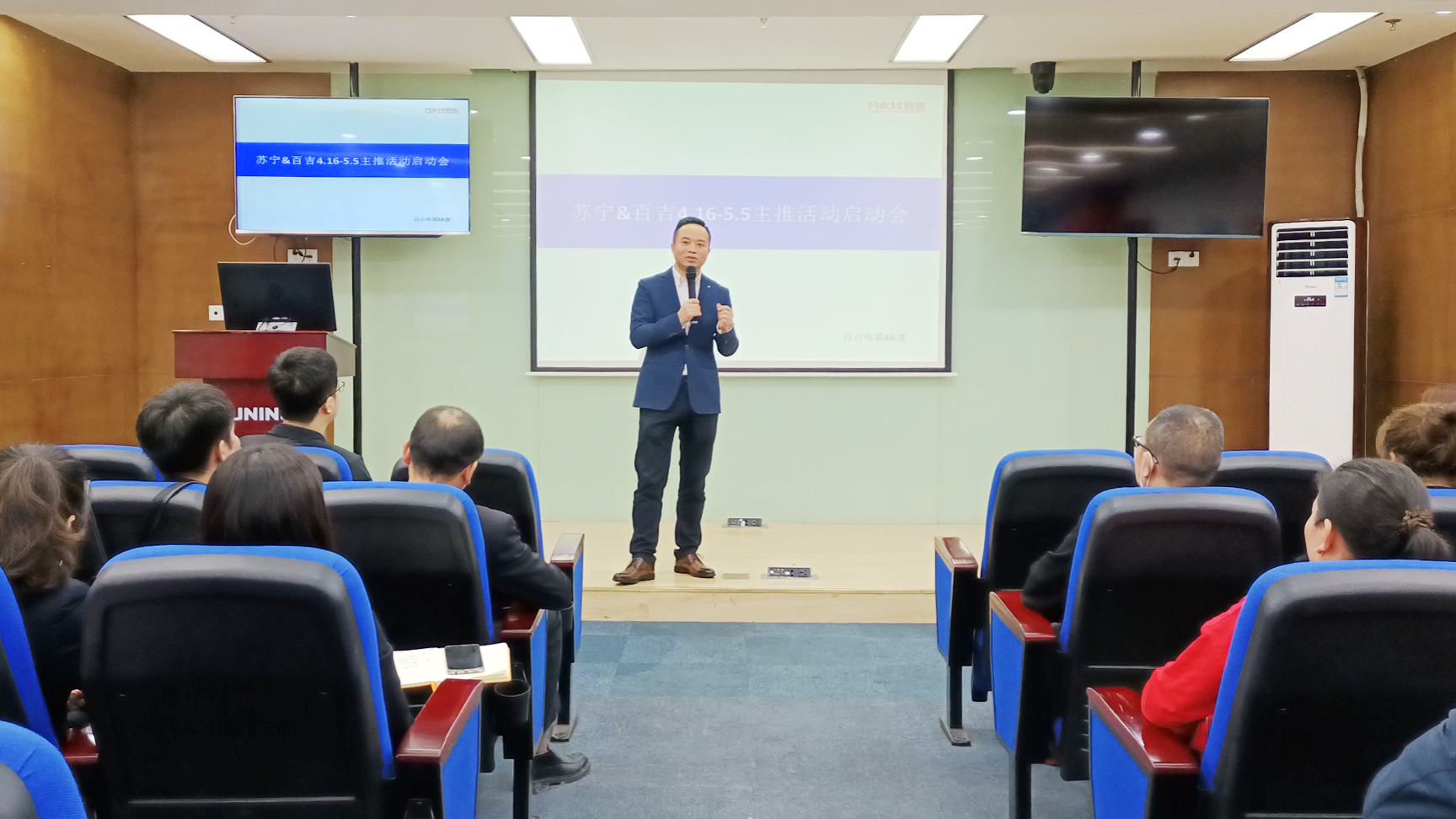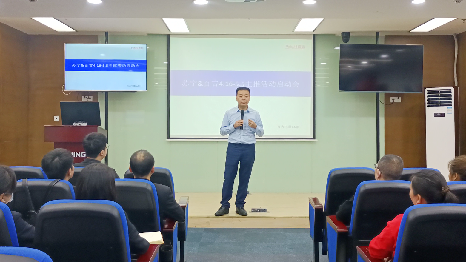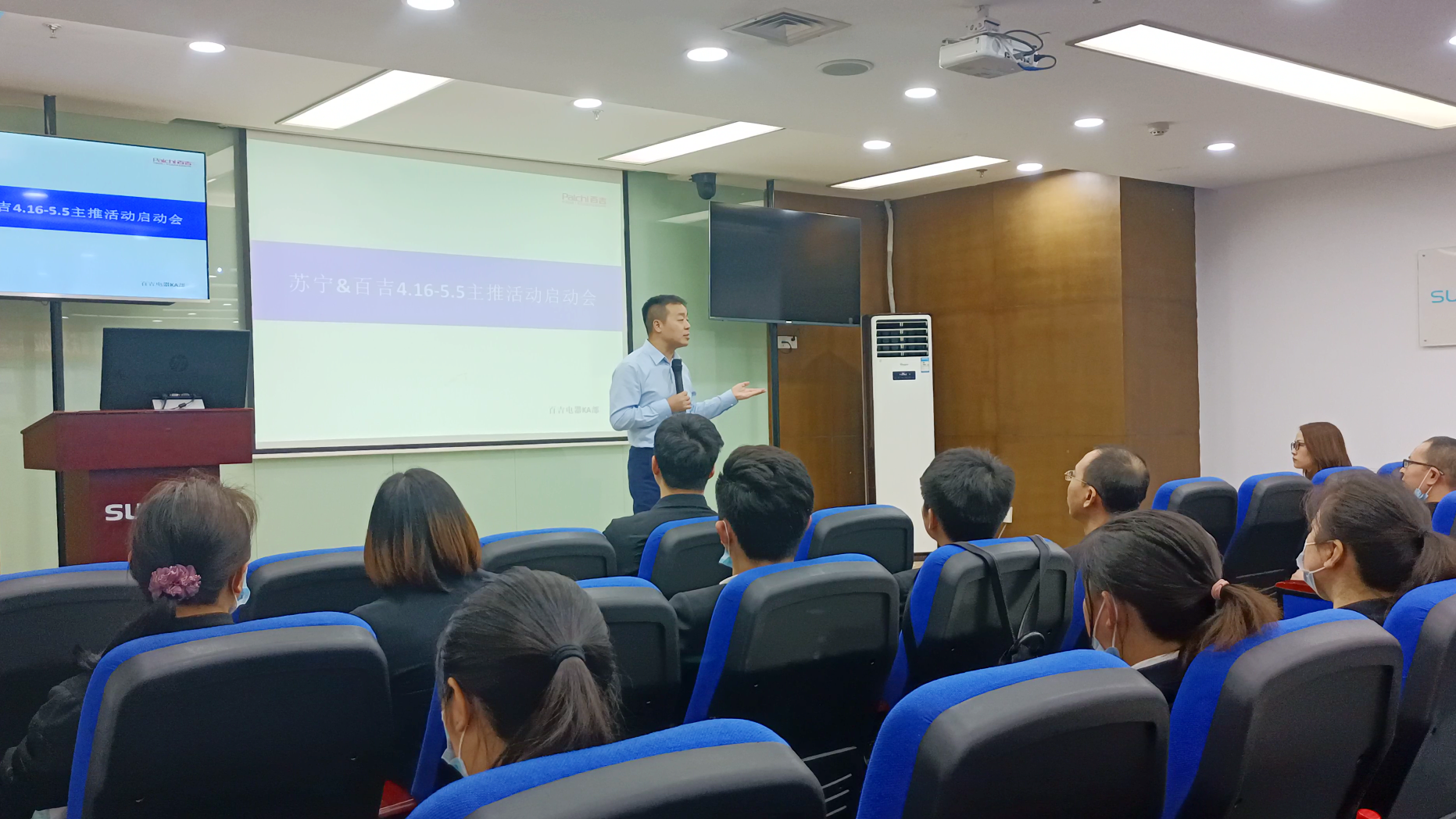 蘇寧&百吉4.16-5.5主推活動啟動會在解放碑蘇寧易購營銷中心召開。蘇寧重慶大區(qū)總經(jīng)理-劉其志,重慶蘇寧廚衛(wèi)經(jīng)營部采銷總監(jiān)-郭騏菘,重慶百吉廚電副總經(jīng)理-童強(qiáng),重慶百吉廚電KA銷售總監(jiān)-鄧躍參與了此次會議并發(fā)表講話,同時參會的還有蘇寧易購銷售督導(dǎo)以及百吉廚電銷售。會議重點講解蘇寧&百吉聯(lián)合主推活動任務(wù),為迎接即將到來的五一小長假,百吉特推出大型促銷活動,此次會議明確了兩方銷售任務(wù),同時為蘇寧和百吉形成密切的合作關(guān)系發(fā)展定調(diào)。